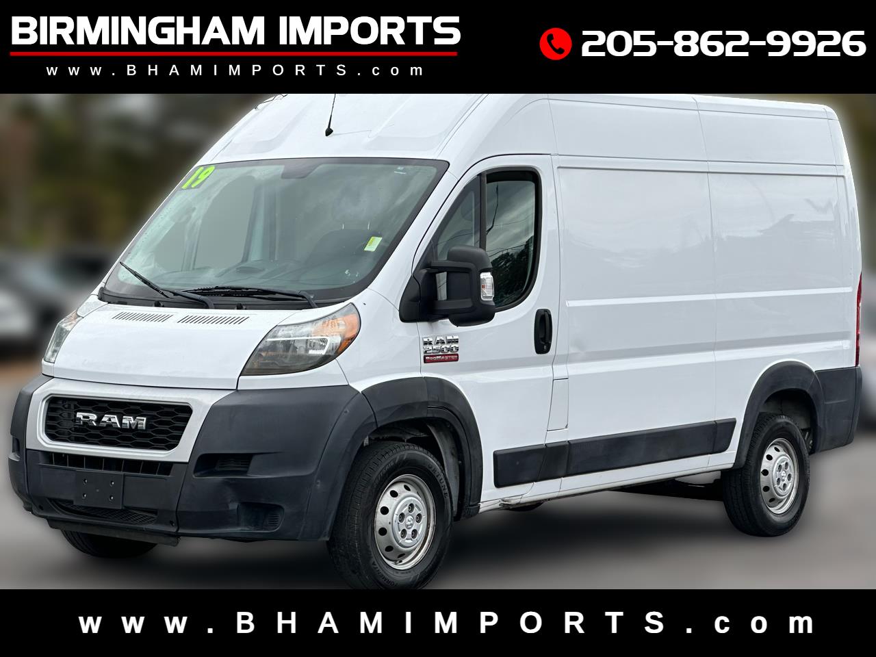 This 2019 RAM ProMaster Cargo Van is a powerhouse on wheels with its 3.6L V6 engine that's ready to tackle any job thrown its way. With a heavy-duty suspension and towing equipment included, this van is built to handle a maximum payload of 4,130 lbs with ease. The front-wheel drive ensures stable handling, while the hydraulic power-assist steering makes maneuvering a breeze. You can rely on the 180 Amp Alternator to keep you going on those long hauls, and the 24-gallon fuel tank means fewer stops for gas. This van is not just about power; it's also designed for convenience with features like steering wheel-mounted audio controls, a touchscreen display, and a user-friendly dashboard layout. The interior is practical yet comfortable, with durable vinyl/rubber flooring and ample storage options. Safety is a top priority with side-impact beams, low tire pressure warning, and a ParkView back-up camera for added peace of mind. Plus, a Carfax report is available for your review. Whether you're hauling cargo or on a road trip adventure, this RAM ProMaster has got you covered!Visit Birminham Imports LLC online at www.bhamimports.com to see more pictures of this vehicle or call us at 205-862-9926 today to schedule your test drive.